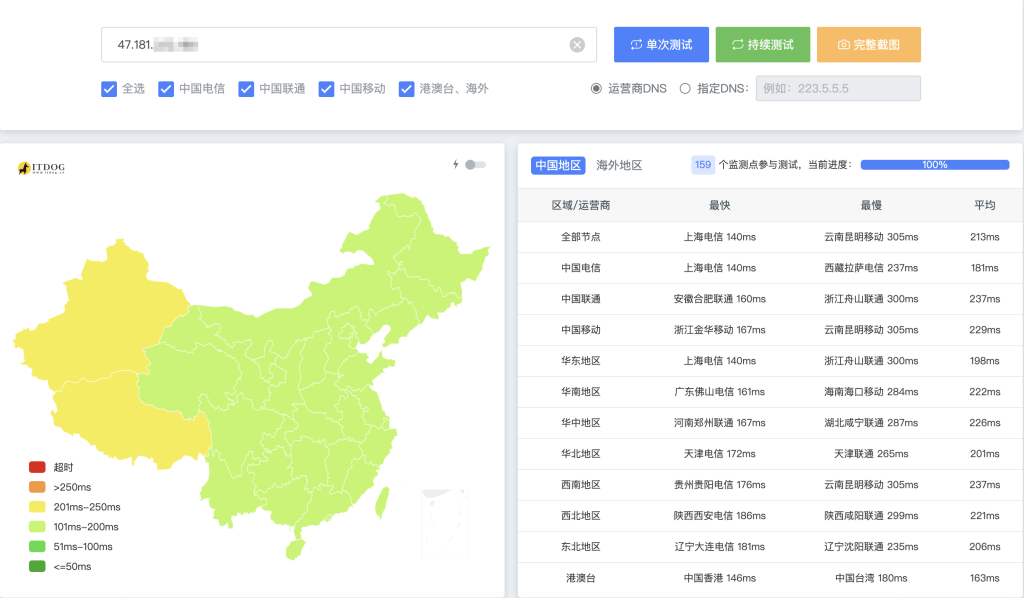 10 189.25ms 223.120.*.* AS58453 [CMI-INT] 中国 上海 cmi.chinamobile.com 移动